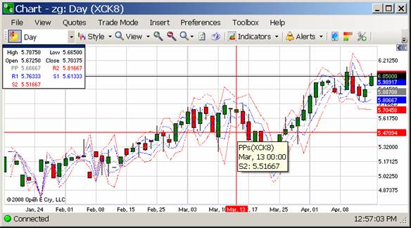 This is a graphic representation that is a volatility based 'envelope' indicator that measures the movement of commodities in relation to an upper and lower moving-average band. Refer to the Figure below.