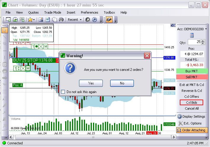 This command terminates only the Bid orders and displays the Warning window. Refer to the Figure below.